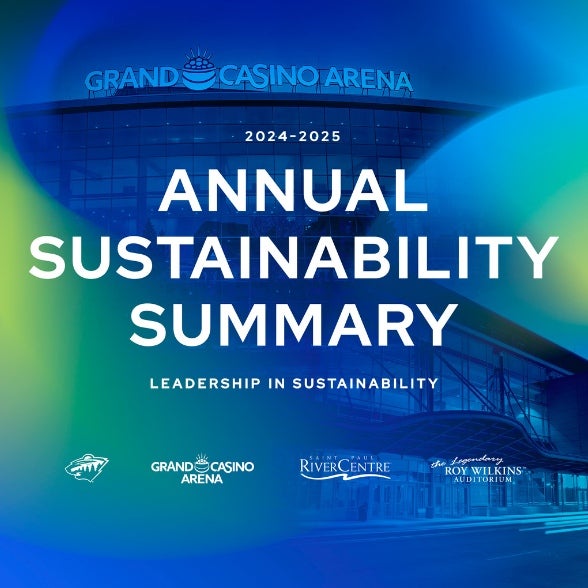 Our 2024–2025 Sustainability Summary highlights how Saint Paul RiverCentre, Grand Casino Arena, Roy Wilkins Auditorium, and the Minnesota Wild continue to set the standard for sustainable sports and live events. From achieving 100% renewable electricity use across our campus to earning 26 GOAL Medals and donating nearly 700 culturally tailored meals to support community kitchens, our progress reflects a long-term vision focused on environmental stewardship, operational excellence, and community impact.